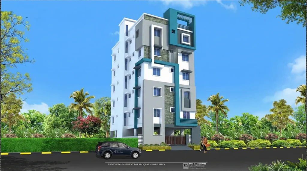A G+5 residential apartment built with quality RCC construction, modern interiors, and spacious 1 & 2 BHK layouts. Located in Hydershakote with easy access to schools, colleges, transport, and key city routes.